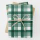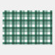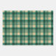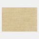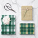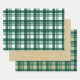 Set of three wrapping paper sheets. There is a green plaid wrapping paper sheet, a burlap wrapping paper sheet (please note there is not actual burlap, but a design) and a burlap and green plaid wrapping paper sheet.