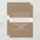 A wedding invitation featuring a burlap inspired background with white lace inspired banner on front and back. Personalise the text on front with details of your occasion. Wording is from the bride's parents.