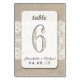 This rustic wedding table number card features a burlap and lace background with the ability to customise the card with your names and wedding date. Coordinately perfectly with our burlap and lace wedding collection.