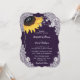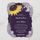 This floral wedding invitation featuring a sunflower against a burlap and lace background adorned with string lights is perfect for inviting your guests to your rustic purple wedding party inspired by sunflowers. Easy to personalise template. 100% customisable design.