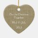"Our 1st Christmas Together" burlap look heart photo ornament with bow. Upload your own photo and personalise text for baby's first or any occasion.