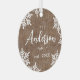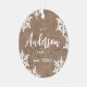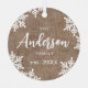 Personalised Christmas family ornaments feature elegant trendy family name script and snowflakes on rustic burlap background, optional family photo on the back, modern and simple.