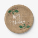Burlap Texture Merry Christmas Paper Plate