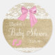 Burlap,White Lace, Pink Bow Baby Shower Classic Round Sticker