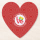 Heart shaped coaster has the Burmese or Myanmar LOVE FLAG. The word LOVE is featured in red letters inside a white, fractal circle of squiggly squares. The circle sits on a red, fractal background, also, of squiggly squares. Great for your guests at your next occasion or party for Burma. Can be customised for any occasion.