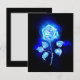 Blooming, abstract rose from blue flame on black background. Fire rose.