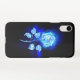 Blooming, abstract rose from blue flame on black background. Fire rose.