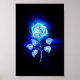 Blooming, abstract rose from blue flame on black background. Fire rose.