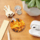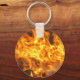 In this close-up photograph of fire, flickering yellow and orange flames from burning brush fill the frame.