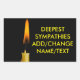 Burning wax candle against the black background. You can add your own text to make a custom product to express sympathy for any person, place or event. Rectangle sticker with expression of deepest sympathies... Add your text or change the text. Mirror image