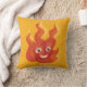 Cute fire flame pillow with a happy burning flame character illustration. This cartoon fire character represents the warmth and movement in flames through fluid organic shapes and warm, even hot colours.