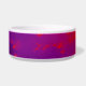 This awesome pet bowl features a swirling red mass surrounded by a purple haze. It looks like a red hot burning galaxy throwing out swirling arms of smouldering stars into a hazy purple gas cloud somewhere in the deep recess of the universe.