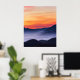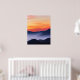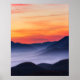 Landscape photograph of a stunning burning sunset with fog in the valley creating layers of hills.