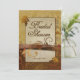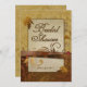 Rich Fall colours and damask texture with an Autumn feel embellish this elegant Bridal Shower invitation. Lovely burnished gold, copper brown tones and floral leaf pattern. Textured ribbon accent with light tan rustic burlap overlay on centre panel. Finishing touch with copper leaf swirl and leaf accents. Customise the invitation front and back text with your information. Matching items are available in my store.