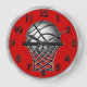 Cool Burnished look Basketball Wall Clocks in YOUR TEAM COLOR. Change the Red background and Add Your Text. CALL LINDA for Help or Design changes: 239-949-9090 Any colour background. Great basketball senior night gift ideas for boys and girls basketball team gifts.
