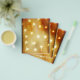 A bold dark background the looks like bright sunshine peeking through bullet holes. It had a cowboy Indian vibe great for your western themed paper project ideas. DIY paper is editable. Can be customised with your words, images, logo, remove or add elements to the design to make it your own.