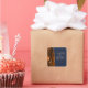 This elegant modern wedding sticker features a burnt orange watercolor agate geode design trimmed with faux gold glitter. Easily customise the gold coloured text on a dark navy blue background, with the names of the bride and groom in handwriting calligraphy over a large, medium navy blue ampersand.