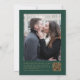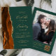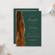 The left-hand edge of this elegant modern wedding invitation features a burnt orange watercolor agate border trimmed with faux gold glitter. The customisable text combines gold-coloured handwriting, copperplate and italic fonts on a dark green background. Add your favourite photo to the reverse side, along with additional text and a QR code to send guests to your wedding website.