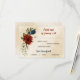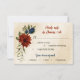 Unique response card RSVP featuring romantic burnt orange and navy blue flowers and green leaves with meal choice option.