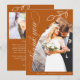 Burnt Orange Arch Botanical Leaf & Elegant Calligraphy Wedding (Two Photo) Thank You Card.