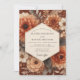 Rich burnt orange and deep russet blooms create a captivating autumnal display. Lush foliage in warm earth tones complements the vibrant floral arrangements. A romantic, bohemian mood is evoked by the dense, painterly style.