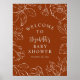 Burnt Orange Botanical Floral Baby Shower Welcome Poster
