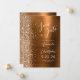 This elegant modern wedding save the date card features a burnt orange brushed metal background decorated with faux diamond glitter. The customisable text combines white script and sans serif fonts. The reverse side repeats the burnt orange brushed metal and glitter design.