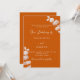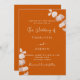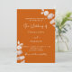 Burnt orange background, decorated with eucalyptus stems, sprigs. Personalise and and add your names and the details.