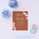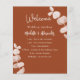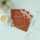 Dark burnt orange background, decorated with eucalyptus stems, sprigs. Personalise and add your names and the details.