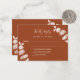 Dark burnt orange coloured background, white text. Decorated with eucalyptus sprigs, stems. Personalise and add a date and your names.