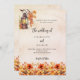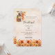A rose gold gradient background. Decorated with a vintage latern and orange flowers. Personalise and add your names and the details.