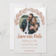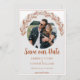 This Garland Photo Save the Date Announcement comes with a simple text design, an elegant foliage garland in a modern outlined box waiting for your photo and your wedding details to customise against a light grey arch background.