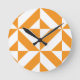 Burnt Orange Geometric Deco Cube Pattern Round Clock