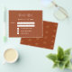 Front: Burnt orange coloured background. Personalise and add the reply by date.