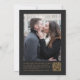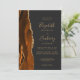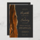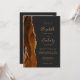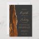 The left-hand edge of this elegant modern wedding invitation features a burnt orange watercolor agate border trimmed with faux gold glitter. The customisable text combines gold-coloured handwriting, copperplate and italic fonts on a dark charcoal grey background. Add your favourite photo to the reverse side, along with additional text and a QR code to send guests to your wedding website.