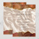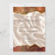 The top and bottom edges of this elegant modern wedding invitation feature a burnt orange watercolor agate border trimmed with faux gold foil. The customisable text combines handwriting, sans serif and italic fonts in charcoal grey on a background image of ivory silk or satin. The reverse side features a matching burnt orange agate and ivory design.