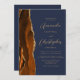 Burnt Orange Gold Agate Navy Blue QR Code Wedding Invitation