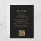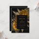 This elegant, moody wedding invitation features a lush, romantic floral bouquet in burnt orange and rust with gold faux foil and glitter foliage on a black background. Customise the gold-coloured text in stylish fonts on a black rectangle. The reverse side provides space for wedding details on a solid black background, along with a QR code guests can scan to visit your website and RSVP, which saves the cost of printing and mailing separate RSVP cards.