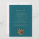This elegant, moody wedding invitation features a lush, romantic floral bouquet in burnt orange and rust with gold faux foil and glitter foliage on a teal blue background. Customise the gold-coloured text in stylish fonts on a teal rectangle. The reverse side provides space for wedding details on a solid teal background, along with a QR code guests can scan to visit your website and RSVP, which saves the cost of printing and mailing separate RSVP cards.
