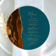 Burnt Orange Gold Teal Round Plate Wedding Menu