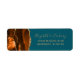 The left-hand edge of this elegant modern wedding invitation return address label features a burnt orange watercolor agate border trimmed with faux gold glitter. The customisable text combines gold-coloured handwriting and copperplate fonts on a teal background.