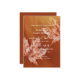 This fall family reunion invitation card has a burnt orange colour theme featuring subtle monochromatic maple leaves accenting a flowing light to dark earthy burnt orange gradient - by katz_d_zynes