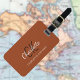 Burnt orange monogrammed luggage tag