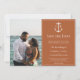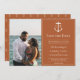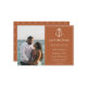 This Nautical Monogram Photo Save the Date Announcement comes with a simple text design, a simple nautical anchor for the bride and groom monograms in a modern outlined box waiting for your photo and your wedding details to customise. Additional colours available with this design. Perfect for the couple who wants a nautical theme to their wedding announcements.