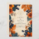 Celebrate your love with this elegant fall-inspired design featuring burnt orange florals, navy foliage, and watercolor blueberries. A perfect blend of seasonal charm and bold sophistication, ideal for autumn weddings with a moody, romantic aesthetic. Fully editable to suit your special day.