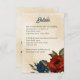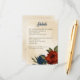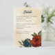 Unique wedding enclosure card featuring romantic burnt orange and navy blue flowers and green leaves.