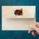 Unique wedding envelope featuring romantic burnt orange and navy blue flowers and green leaves.