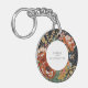 Burnt Orange Peonies Floral Painting Gold Wedding Key Ring