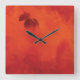 Burnt Orange Persimmon Leaf Abtract Autumn Square Wall Clock