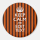 A personalised trendy burnt orange stripes decor Keep Calm and Carry On style saying on a custom gift. Humourous or whimsical try on your creative words on the two editable lines of text. Remember to use CAPITAL letters for best results.